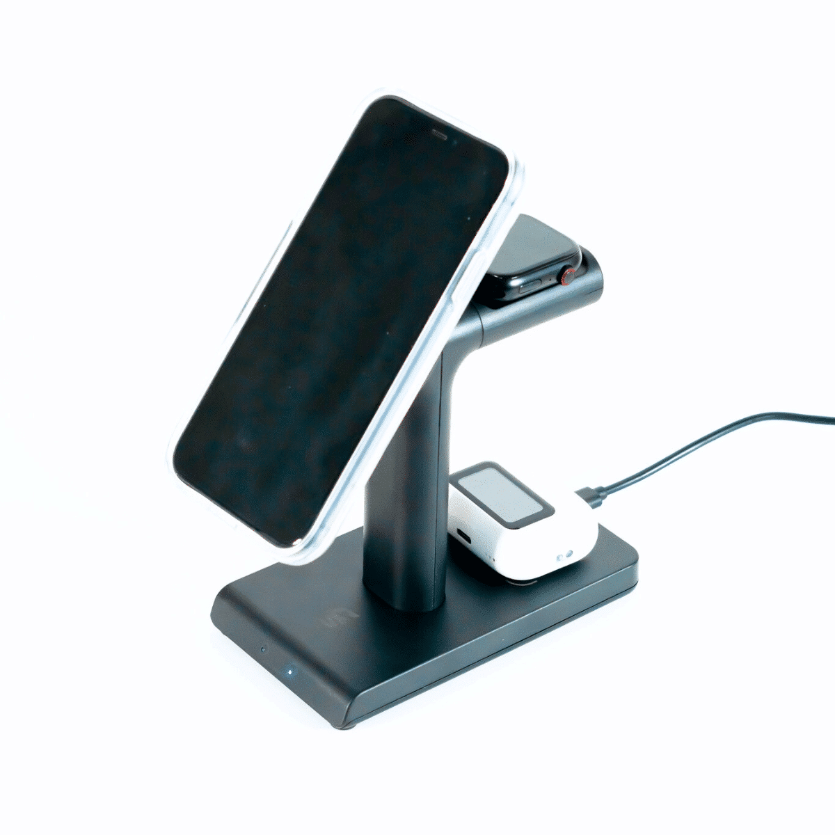 • Carga inalámbrica 3 en 1: Energiza tu celular, smartwatch y audífonos inalámbricos al mismo tiempo sin necesidad de cables adicionales.