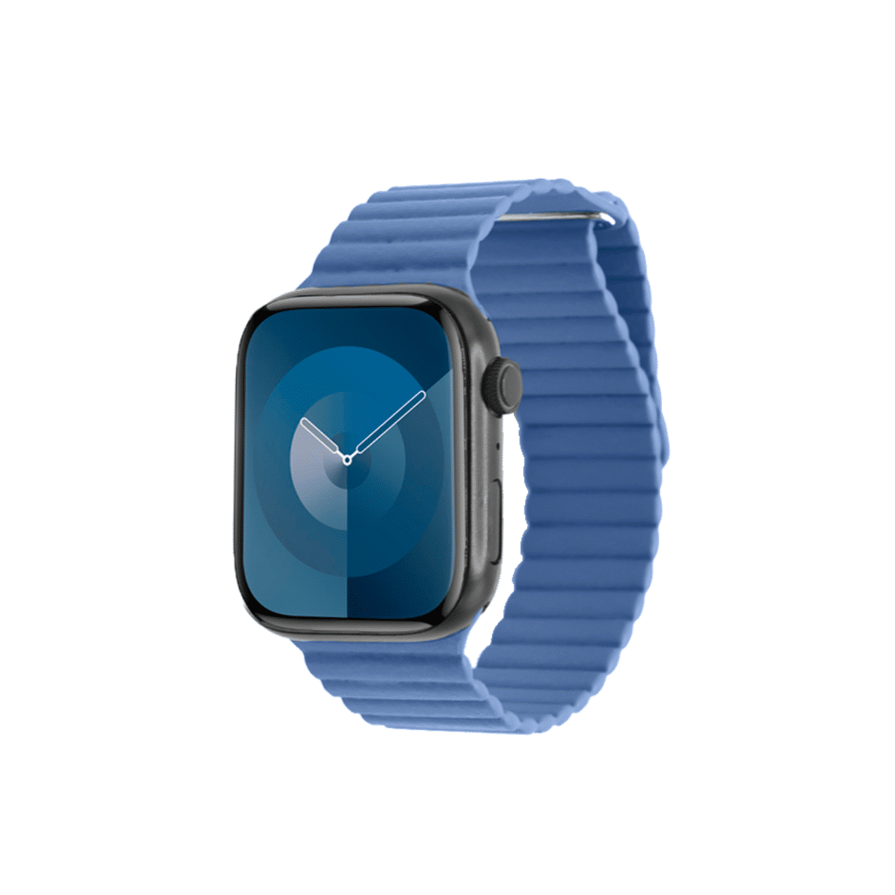 El sistema de sujeción magnética asegura que la correa se ajuste de manera firme y precisa a tu muñeca, proporcionando un nivel de comodidad y seguridad superior. La flexibilidad del material, que podría ser de un compuesto suave y duradero, ofrece un ajuste adaptable que se siente natural durante todo el día, permitiendo que tu Apple Watch se mantenga en su lugar sin deslizamientos.