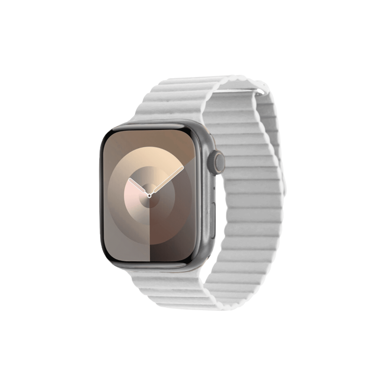 El sistema de sujeción magnética asegura que la correa se ajuste de manera firme y precisa a tu muñeca, proporcionando un nivel de comodidad y seguridad superior. La flexibilidad del material, que podría ser de un compuesto suave y duradero, ofrece un ajuste adaptable que se siente natural durante todo el día, permitiendo que tu Apple Watch se mantenga en su lugar sin deslizamientos.