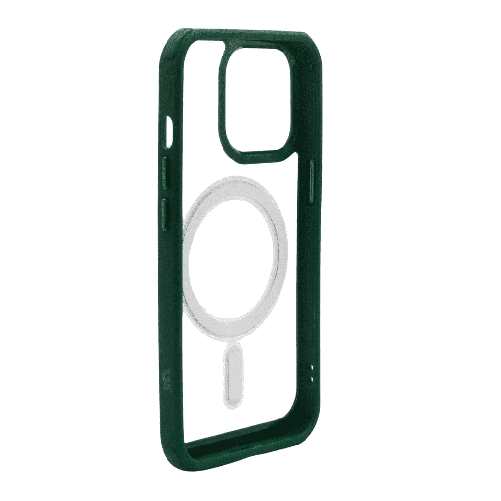 Ideal para quienes buscan una combinación de estilo y protección, el Case Transparente con MagSafe y Bordes de Color ofrece una defensa robusta junto con un diseño atractivo y funcional.