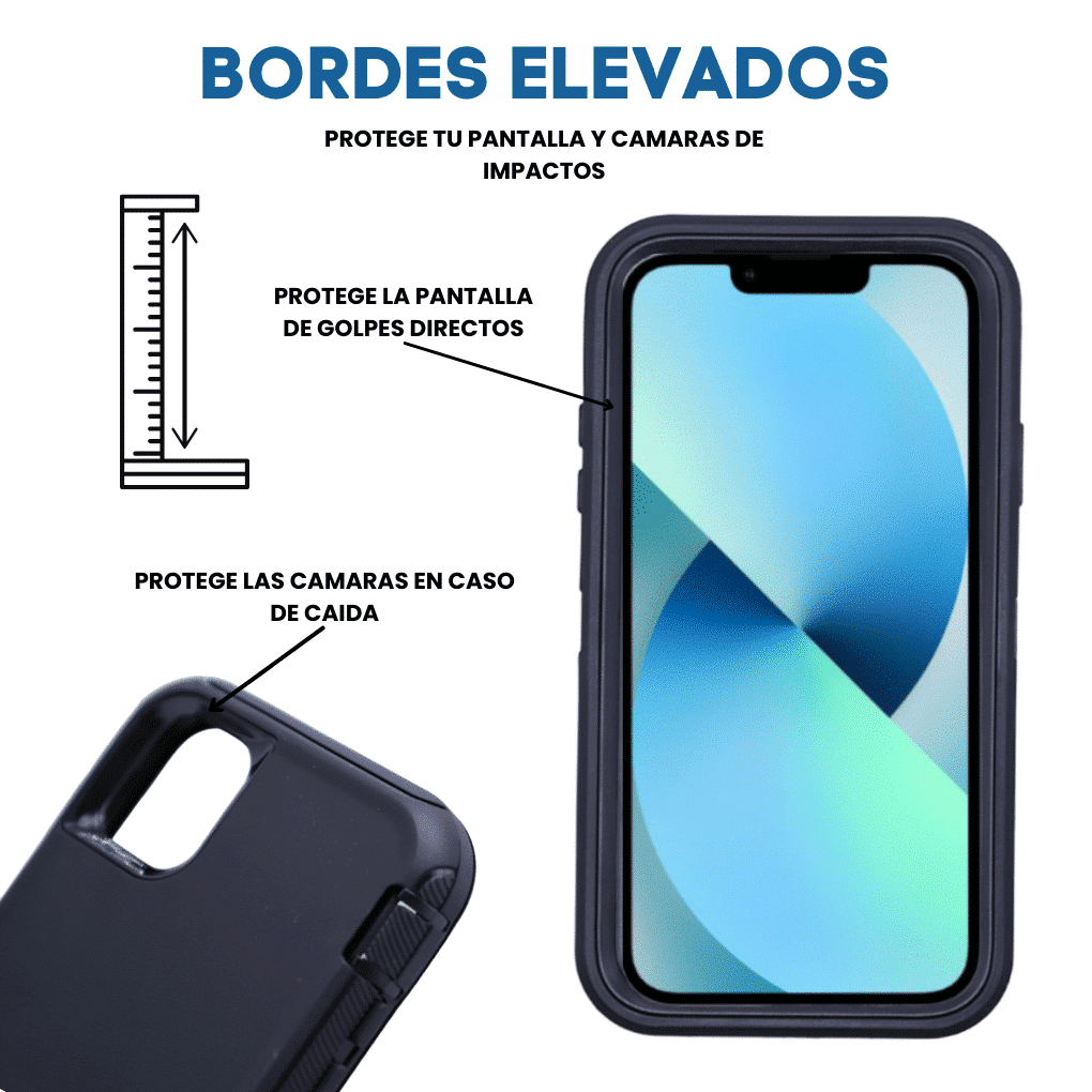 Conquista la protección definitiva con nuestra Funda de Uso Rudo de Grado Militar. Diseñada para soportar las condiciones más extremas, esta funda de alta resistencia se compone de tres piezas para una defensa completa y efectiva.